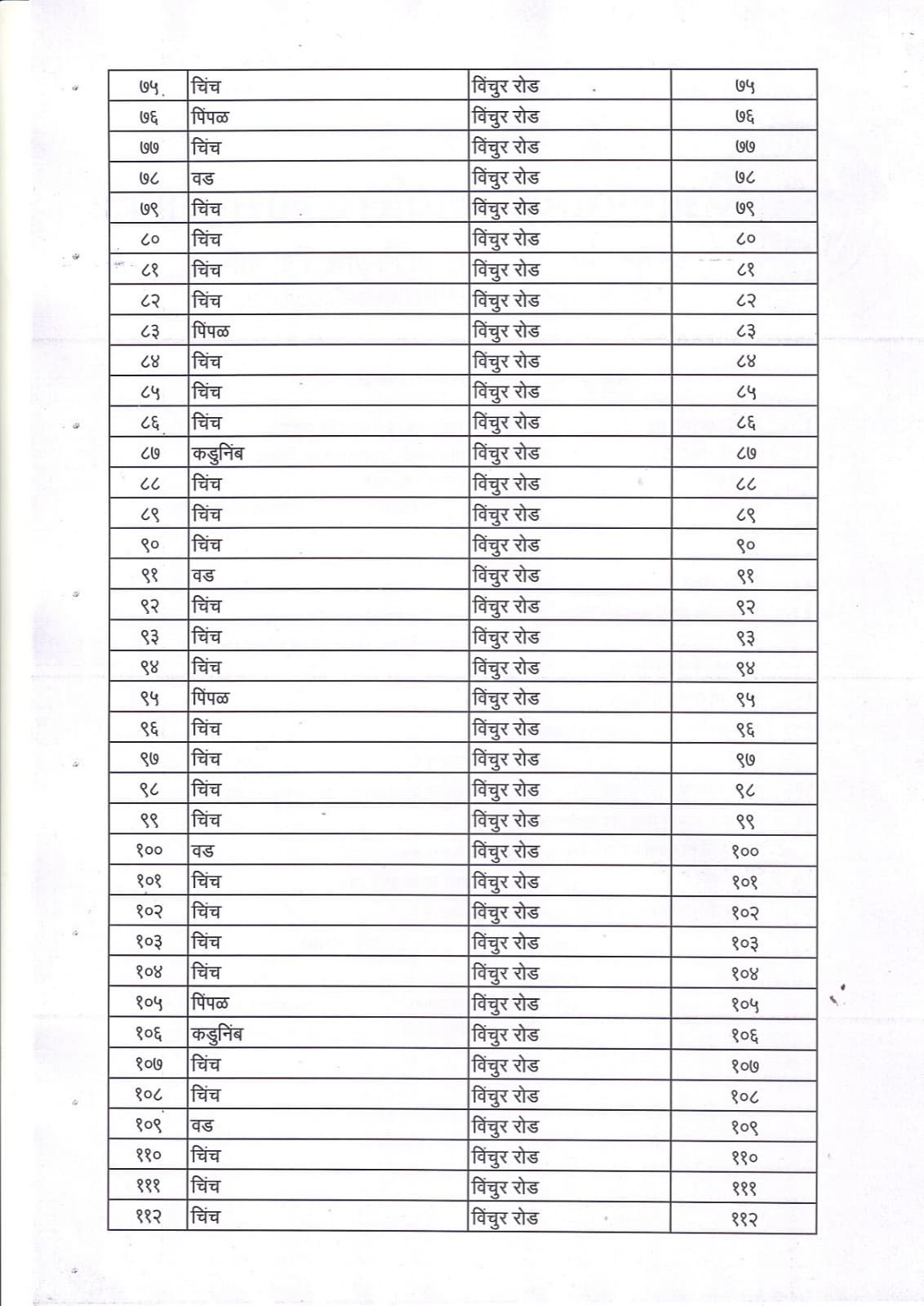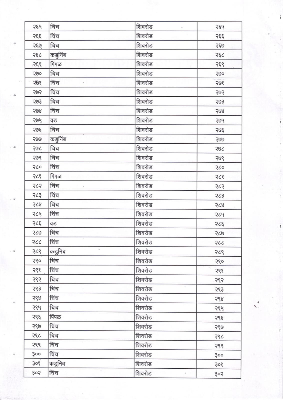 वृक्ष गणना नोंद व प्रसिद्ध यादी - 3